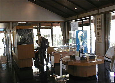 資料館は鉄筋コンクリート和風仕上げの平屋建で、約450平方m(約140坪)。テラスに立つと生態園を一望でき、館内は展