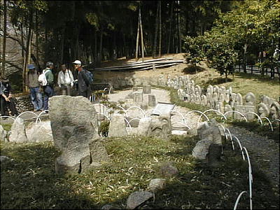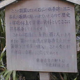 百々橋を登っていったところに、かっての二条城の石垣に使われていたという石像物が並べられている。殆どが石仏である。