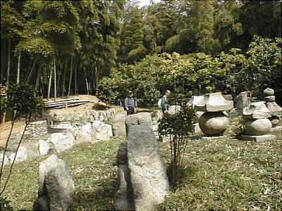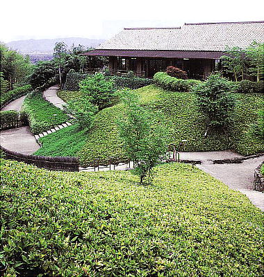 ている。 「竹の資料館」の北面および茶室「竹風軒」の前面には、築山と大きいを石を配した庭が広がり、キンメイモウソ