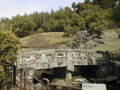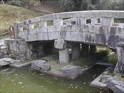 公園の一角に、古い石橋が都大路から移築されている。石橋の名前は「百々(どど)橋」。この橋は、かつて京都の寺之内
