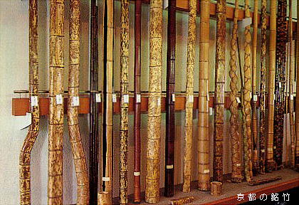 京銘竹とは、京都で生産される建築用や装飾品用などに用いられる竹材で、角竹、角紋竹、すす竹、白竹、ゴマ竹、亀甲竹、
