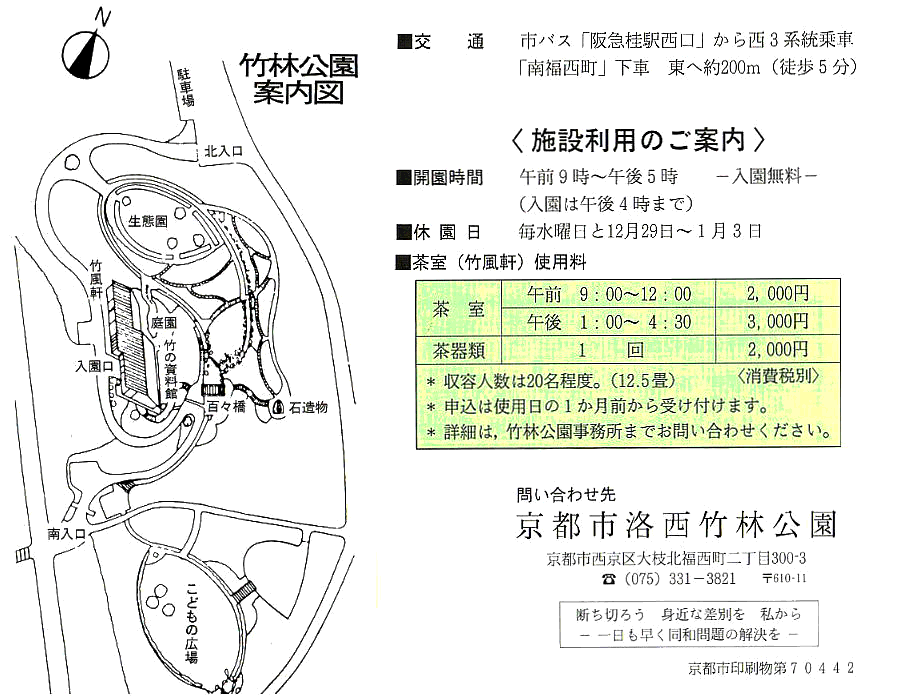 ある。園内には、珍しい種類の竹がたくさん栽培されている。また園内の「竹の資料館」では、竹に関するさまざま資料な