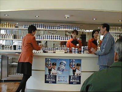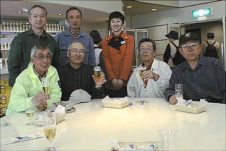 見学の最後は待望の試飲タイム。約20分の時間内飲み放題は、ビール党にはこたえられましぇん。ピーナツやチーズ、おかきなどの
