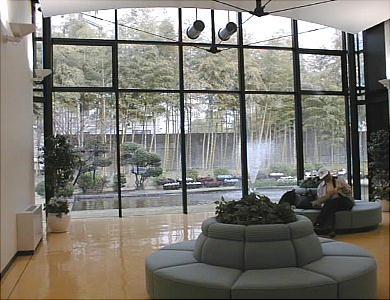 つ。花見をしていたときの空模様とはまさしく一変した天気だったが、送迎バスがサントリー工場に着いたとたんに、雨は止んだ。