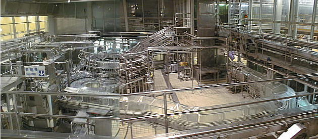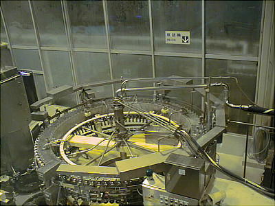缶詰めの工程。大きな円形のマシンが回りながら350mlの缶にビールを一気に詰めていく。1分間になんと約1000本の勢いだそうだ。