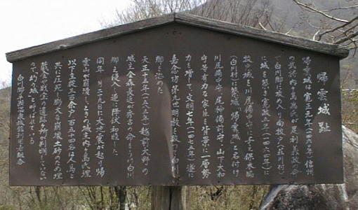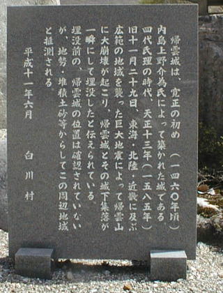 るんかなと思いながら寄ってみると、まるで半村良の小説にでも出てきそうな名前だった。「帰雲城」 なんとかっこいい名前。