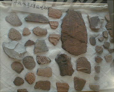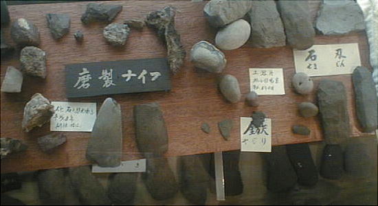近在から出土したのだろう、石器や土器のかけらが無造作に陳列されている。ここにも古代人の息吹があった。