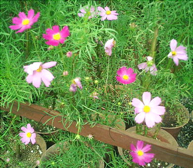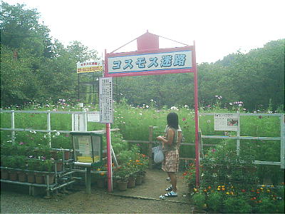 境内には、コスモスの花で迷路が造ってあった。秋空にコスモスが映えていた。