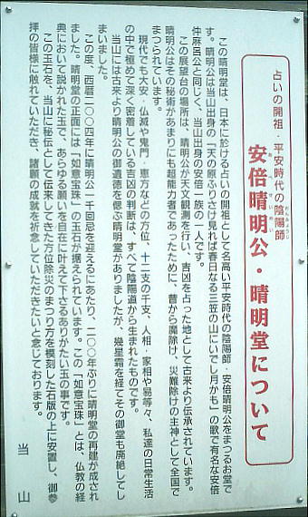 今年は「安部晴明」の1000回忌にあたるそうで、その前に、2000年に建てられた晴明堂が建つ境内に、