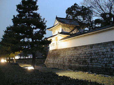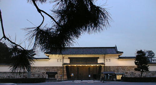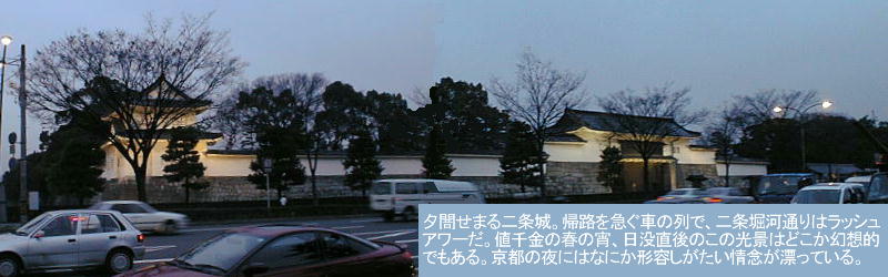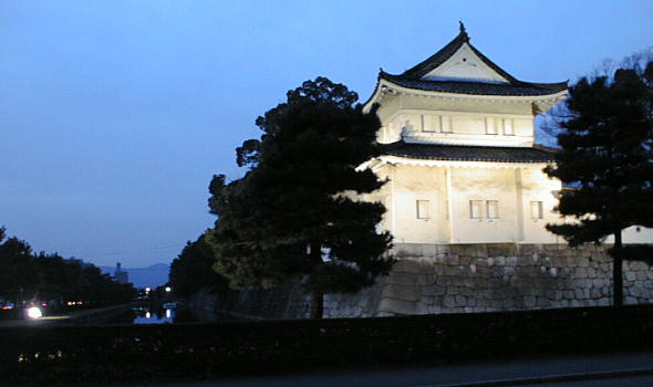 ここから歩いて20分ほどのお客さんを訪ねた帰り寄ってみたが夕暮れでもう城門は閉まっていた。夜の二条城も良かったが、昼間にも