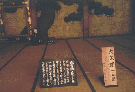襖絵は、狩野探幽の作になります。この部屋で1867年(慶応3年)10月、15代将軍慶喜が諸大名を集め大政奉還を発表し、徳川幕府265年