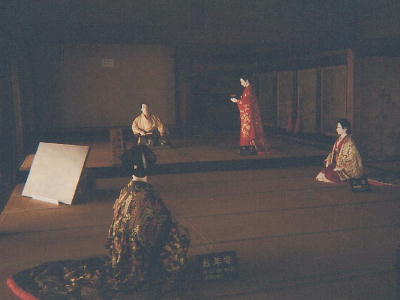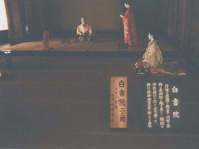 将軍の居間と寝室です。内部の装飾は、表御殿と趣を異にし、絵画も狩野興以の作で、居間にふさわしい山水画になっています。