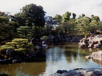 れる。庭は、大広間から眺められるよう造られたものですが、寛永3年後水尾天皇の行幸御殿が池の南側に建てられたとき、御殿からも