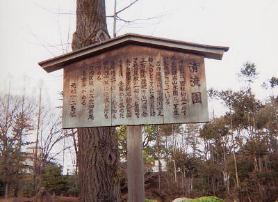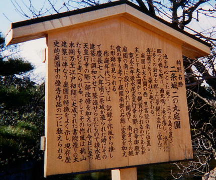 この庭園は、江戸初期の豪商角倉了以の屋敷から、建物の一部と庭石約800個を譲り受け、これを元に二条城にふさわしく、雄大・明朗・
