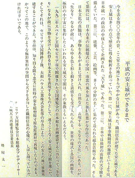 「安土城」である事が解明された。そして前述の万国博出品のため、400年を経てその栄姿が復元されたのである。