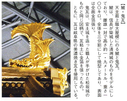 「金箔の鯱(しゃち)をのせた大屋根」が取り付けられた。内部には当時信長が「狩野永徳」を中心に描かせた「金碧障壁画」も