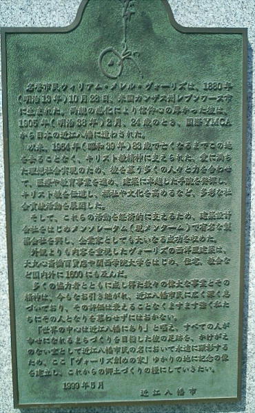 ヴォーリズは明治38年に八幡商業高等学校の英語教師として来日し、昭和39年に83歳の生涯を終えるまで近江八幡市に住