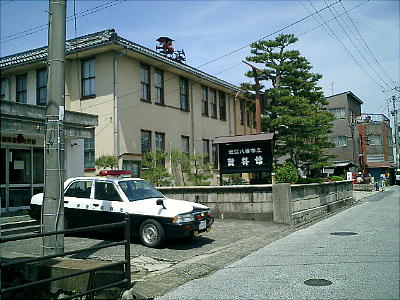 上左が近江八幡市立歴史資料館。元はきっと公的な建物だったに違いないと思って受付の女の子に聞いたら、「警察署です。」