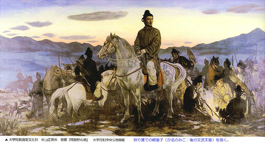 とされている。軽皇子は後に文武天皇として即位する。草壁皇子の子で、聖武天皇の父である。14歳で即位し、24歳で崩御している。