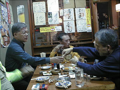 駅前の料理屋さんで反省会。やたら芸能人や力士のサインがあった。西武(今巨人)の清原のサインもあったがPL高校と書いてあって、
