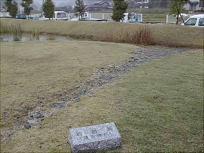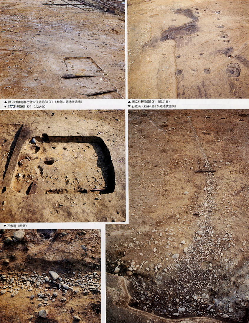 西棟で、中心建物の一つと推定される。また石敷溝は、浅いU字形の溝底に1〜3cm大の小石を敷き詰めている。現存値で、
