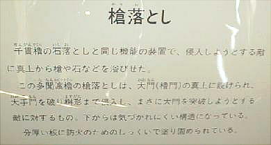 多聞とは松永久秀の多聞城の櫓(やぐら)に由来する様式名で、他にもあったが現存しているのはこれのみ。(下右)櫓の鉄門を大手
