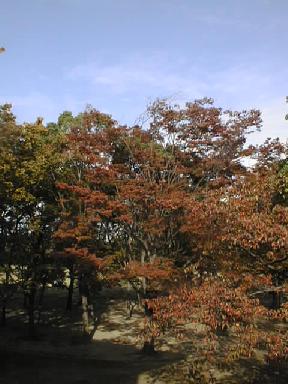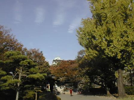 体修理。千貫櫓の銃眼(下左)。今年は紅葉が遅く、大阪城内もやっと色づき始めていた。(下右)