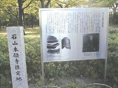 明応5年(1496)の秋、浄土真宗の蓮如上人が今の大阪城付近に1軒の坊舎を営んだ。この坊舎はやがて大坂本願寺(石山本願寺)と