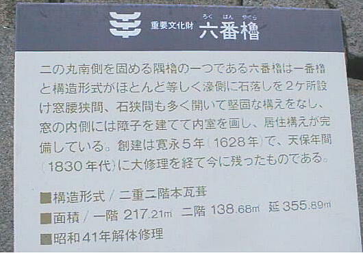 大手門を北西部から防御する重要な二層の隅櫓。名前の由来は、石山本願寺を攻めた信長軍にとって難攻不落の櫓がこの付近にあ