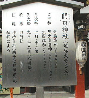 神功皇后が神撰を奉ったところはじめて口を開いたといわれ、神社の名前もこの伝えに由来する。