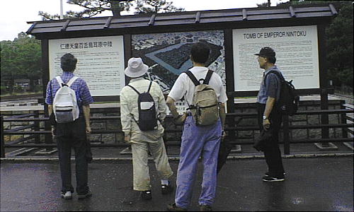 ボランティアのおじさんから仁徳陵の説明を聞く。
