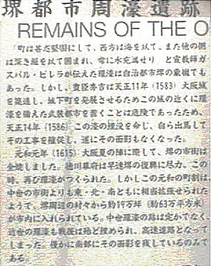 歩いている途中にあった堺奉行所の跡。泉陽高校の西隣。堺に奉行所を置いていたのは信長であるが、以後、秀吉