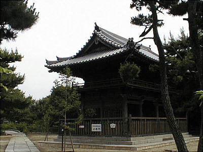 甘露門(上左)と鐘楼(上右)、鐘楼は焼失して明治の再建となっていた。