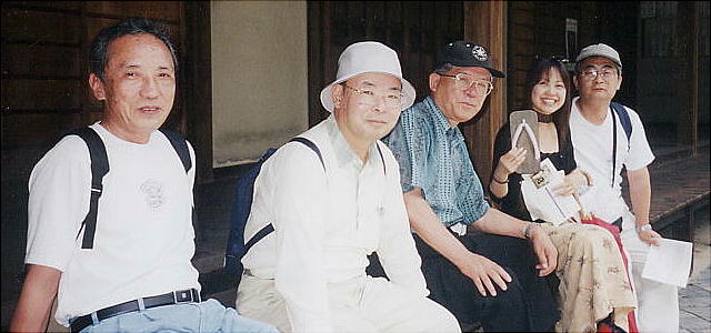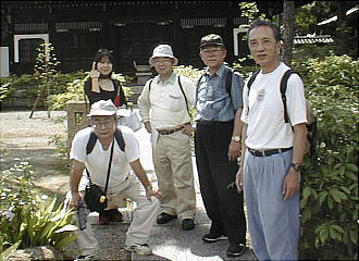 仏殿の前にて全員で記念撮影。暑かったねぇ−。朝は土砂降りだったのにねぇ。