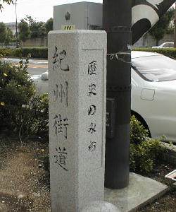 電車道の際(道路の真ん中あたり)に、「明治天皇何とか・・」と書いた石碑が立っていたが、歩道からは遠くてよく見えなかった。(下右)