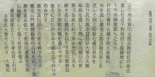 侘茶を大成した。屋敷跡にはひっそりと 椿の井戸が残っている。 ビルとビルの谷間にあり、聞いても近所の