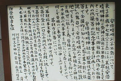 と言うことであり、毎年、命日の9月26日には晴明祭(せいめいさい)が行われている。また、阿部晴明の生誕物語は、