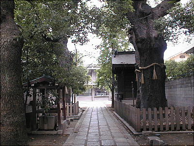 境内は、木々の葉陰に覆われて薄暗く狭い。京都の晴明神社も狭いがここも劣らない。狐の子という伝説から、境内の