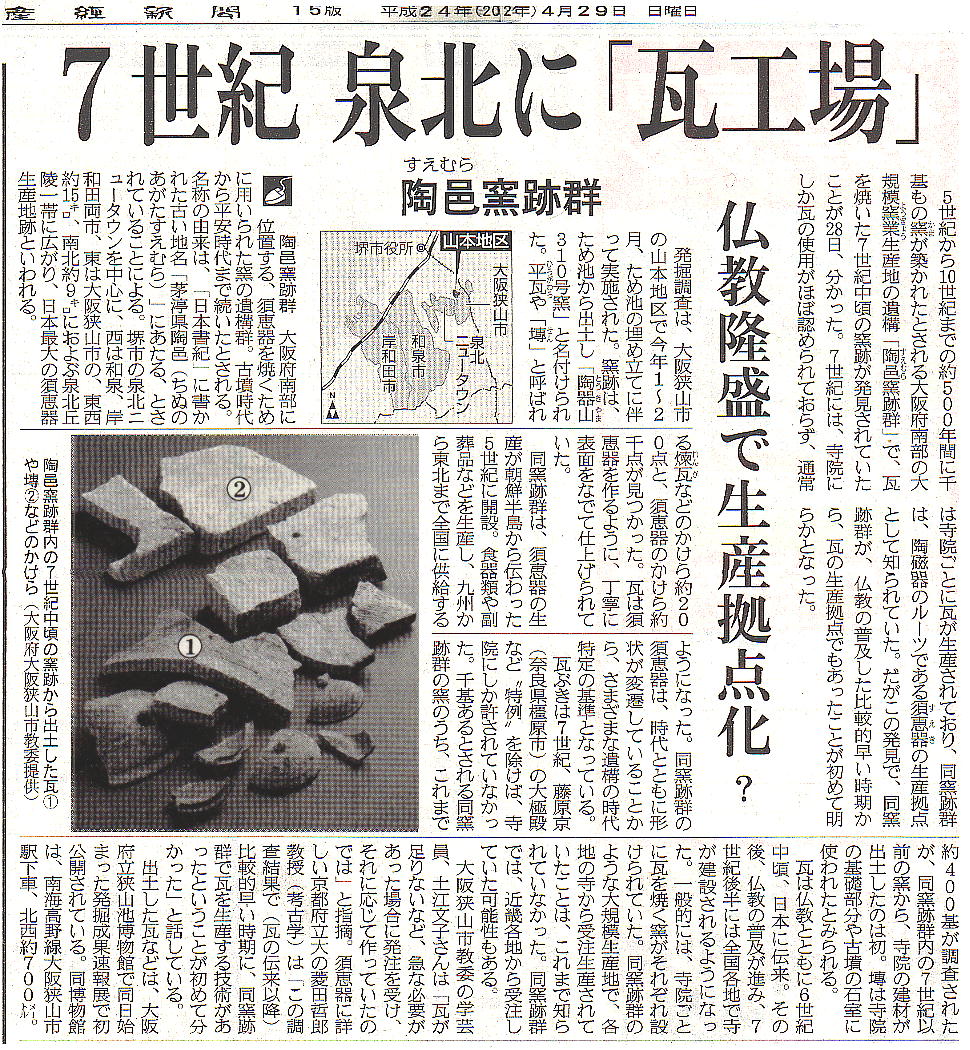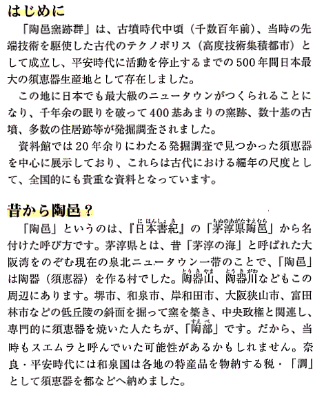 泉北ニュータウン周辺は、「陶邑窯跡群」と呼ばれ、日本最古の須恵器生産地である事が明らかになった。資料館にはニュ