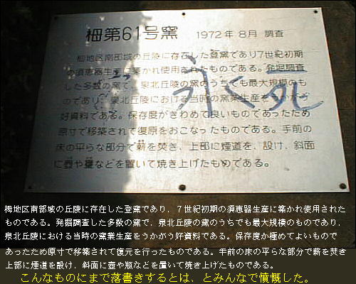 森は一つしかない。以下が、移築されて復元された須恵器製造の登り窯である。公園の北入り口にある。