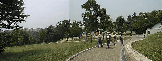 考古館の左側の丘陵上に、泉北地方随一のマンモス団地、泉北ニュータウンが拡がっている。昭和40年代に大規模開発が