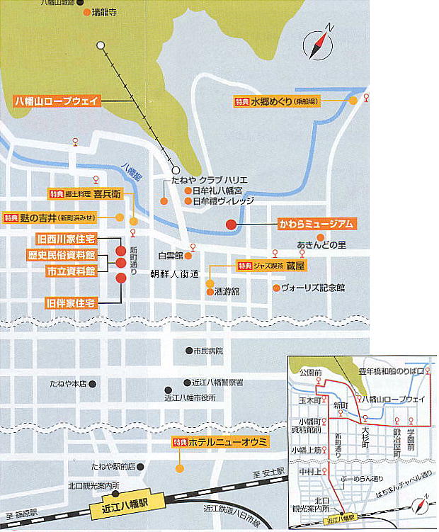 今回は、上右の「近江八幡ワンデーパスポート」という一日クーポン券を利用してまわった。JRの往復券
