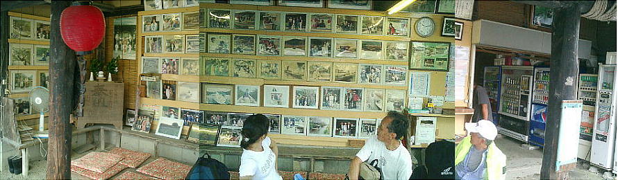 待合所の壁には船に乗った芸能人の写真がズラリ。京都に近いせいか時代劇の役者が多かった。(↓)