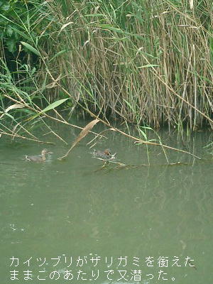 の親子が魚やザリガニを銜(くわ)えて船の周りに、水中からポコッと顔を出す。台風のせいばかりではな