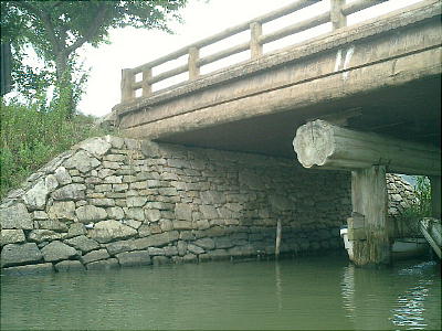 上右橋桁の石積みは、坂本の有名な石積み集団、「穴太衆」(あのうしゅう)が積んだものだそうである。