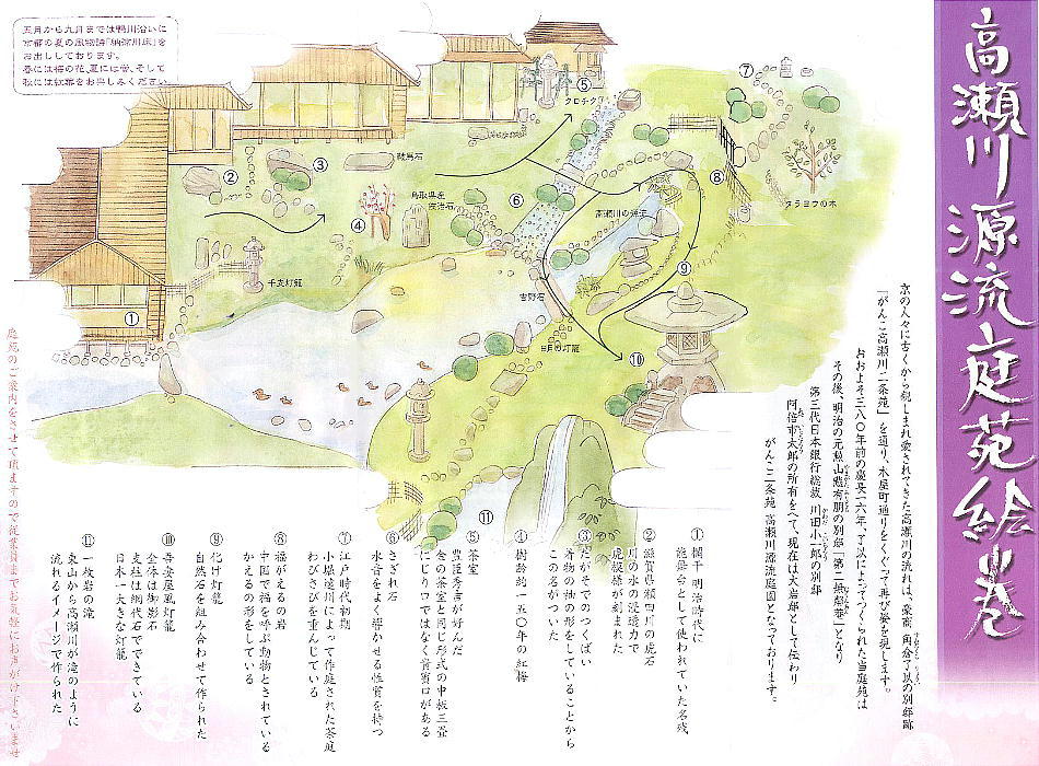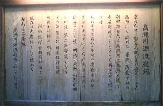 邸等をへて、現在は「がんこ高瀬川二条苑」となっている。高瀬川は、この庭園の中を抜けている。
