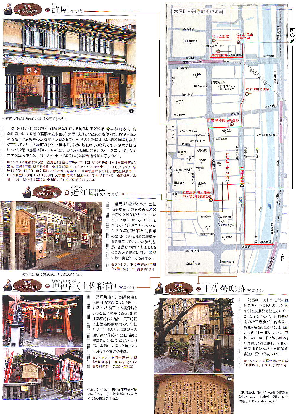 加えたのは「坂本龍馬・中岡慎太郎−遭難の地」と「坂本龍馬寓居跡−酢屋」の2ケ所である。もっとも酢屋の方は旧跡ではあるが、