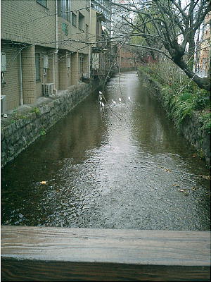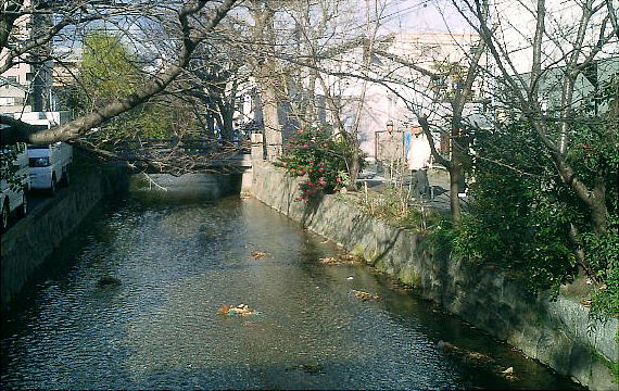 現し高瀬川となる。分水地点では、もう一方の流れが鴨川へ注いでいる。