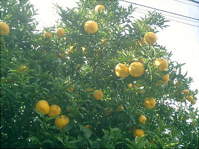 この日の高瀬川はいつになく水が澄み切っていた。川岸には椿、カキツバタが咲いていて、どういうわけか夏みかんがたわわだった。