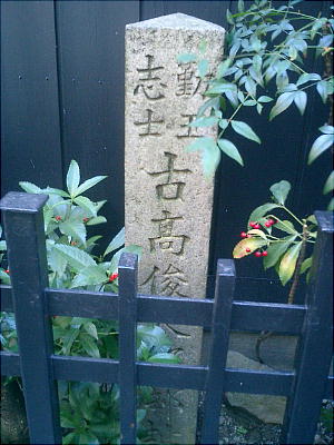 新撰組が池田屋の尊攘派志士達を襲撃した事件の原因となった、古高俊太郎の邸宅跡である。四条通りから1,2本北に